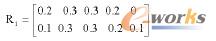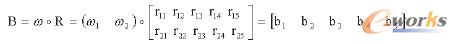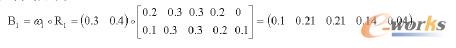 為了得到從U到V的模糊關(guān)系矩陣(即評價矩陣),可邀請若干具有不同專業(yè)背景和特長的相關(guān)專家對各個風險因素的風險高低進行評價,然后統(tǒng)計所有專家的評價結(jié)果,并把每個風險項等級的評價結(jié)果折合成[0,1]區(qū)間的數(shù)值,得到各風險項的模糊向量,如: w1變革風險和w2軟件風險。將上述兩個風險項評價結(jié)果合并成一個矩陣,于是得到從U到V的模糊關(guān)系矩陣:
