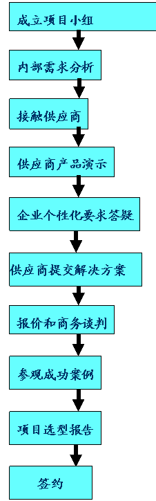 到底怎么樣才可以按照公司的計(jì)劃去選擇一套適合自己的管理系統(tǒng)呢?本文就此做一些探討,我們可以看到有很多文章教道企業(yè)如何去選擇ERP管理軟件,所以本文不準(zhǔn)備就選型方法或選型策略深入討論,而僅從選型流程和所需要文檔以及工作分配上拋磚引玉,從我們的一些實(shí)踐案例中,總結(jié)出企業(yè)管理軟件選型流程,希望以定量的方法和可衡量的標(biāo)準(zhǔn)給大家提供選型建議。限于篇幅,本文只簡(jiǎn)單介紹選型流程,不涉及選型方法、文檔的具體內(nèi)容和實(shí)施流程,希望在以后的文章中能把選型策略和實(shí)施流程介紹給大家,也歡迎大家跟我交流。
