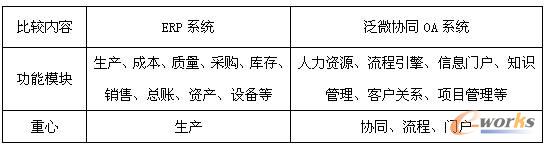 表1 ERP系統(tǒng)與協(xié)同OA的對比