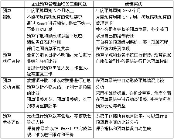 對比企業(yè)最佳實踐,企業(yè)預算管理面臨的主要問題可以用下表來體現(xiàn):