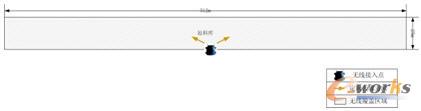 每庫區(qū)(原料庫和成品庫)為1跨,每跨寬度都為30米,長度為312米,各有3臺(tái)行車。每個(gè)庫區(qū)內(nèi)布設(shè)1臺(tái)符合802.11b標(biāo)準(zhǔn)的Teklogix PSION 9160無線擴(kuò)頻基站接入L3網(wǎng)絡(luò),其發(fā)射的2.4GHz頻率的無線電波能夠無盲區(qū)地覆蓋行車活動(dòng)區(qū)域。行車上分別安裝1套Teklogix PSION 8560無線車載終端,與無線基站構(gòu)建成一個(gè)無線局域網(wǎng)。庫區(qū)的基站分布如下圖所示: