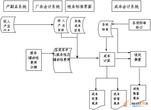 根據(jù)產(chǎn)副品和廠務(wù)會(huì)計(jì)子系統(tǒng)收集的原料成本和制造費(fèi)用,以及其它子系統(tǒng)的各類費(fèi)用,進(jìn)行成本核算。成本會(huì)計(jì)管理流程圖如下圖所示:
