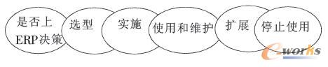 ERP生命周期由6個(gè)不同的階段組成,這些階段是:是否上ERP決策、ERP系統(tǒng)選型、ERP系統(tǒng)實(shí)施、ERP系統(tǒng)的使用和維護(hù)、系統(tǒng)擴(kuò)展直到停止使用。