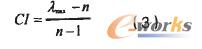 在解決實(shí)際問(wèn)題時(shí)。由于各種因素的影響,可能導(dǎo)致結(jié)構(gòu)出現(xiàn)某種偏差,破壞一致性,為了保證層次分析法得到的結(jié)論基本合理,必需把判斷矩陣的偏差限制在一定范圍內(nèi),為此需要對(duì)構(gòu)造的判斷矩陣進(jìn)行一致性檢驗(yàn),由此引入判斷一致性指標(biāo)Cl和隨機(jī)一致性條件RI。