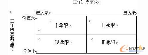 參見下面的矩陣圖。對于監(jiān)理,在工作分解(WBS)的基礎(chǔ)上,根據(jù)任務(wù)的緩急和重要程度特性,我們可以把最近一段時間(半月、一周或一天)的工作根據(jù)其特點分別放在的矩陣圖的4個象限中,進行檢查、分析,并提出監(jiān)理意見。