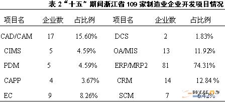 2 信息技術在浙江傳統(tǒng)制造業(yè)企業(yè)應用情況調查