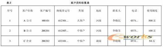 這樣每個準(zhǔn)備客戶信息的人,都知道客戶資料應(yīng)該包括:客戶名稱、編號、納稅登記號、地址、聯(lián)系人、電話和信用額度等數(shù)據(jù)項,這樣可以保證數(shù)據(jù)的完整與一致性,同時也提高了數(shù)據(jù)輸入的效率與效果。