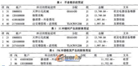 如對(duì) PM 外委服務(wù)的采購訂單進(jìn)行收貨后,再進(jìn)行發(fā)票校驗(yàn),由于PM要求,收貨的金額要盡量與發(fā)票金額相同(由于單價(jià)造成的尾差除外),對(duì)發(fā)票校驗(yàn)及收貨分別進(jìn)行了沖銷,發(fā)現(xiàn)沖銷的憑證與被沖銷的憑證存在金額相同、方向相反的問題,具體憑證如表3:
