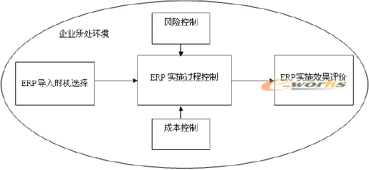 按照基于系統(tǒng)論思想的ERP實施模型,企業(yè)在實施ERP的過程可以分為四個步驟,即企業(yè)所處環(huán)境分析、ERP導(dǎo)入時機(jī)選擇、ERP實施過程控制、ERP實施效果評價,其中,實施過程控制又涉及到成本控制和風(fēng)險的控制,通過兩方面的控制來降低ERP實施過程中的風(fēng)險和成本。