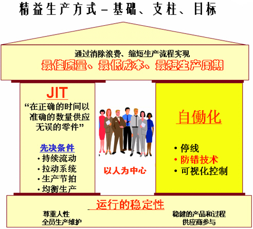 這張圖大家會(huì)在各種場(chǎng)合見到,豐田精益生產(chǎn)方式,它的基本表示就是這樣一張圖,但是我們要不斷的看它,不斷的要有新體會(huì)。