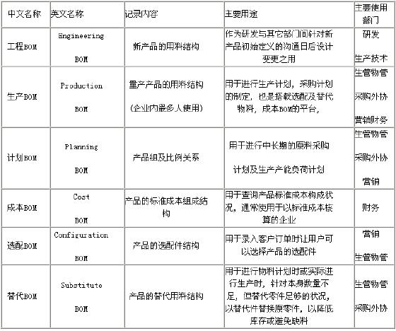 現(xiàn)將一般制造型企業(yè)內(nèi)存在的 BOM 說明如下: