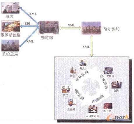 中俄之間的數(shù)據(jù)采用EDIFACT格式,鐵道部與海關總署和質檢總局間的數(shù)據(jù)采用XML格式,數(shù)據(jù)在鐵路廣域網(wǎng)內傳輸時同樣采用XML格式。滿洲里站的作業(yè)按照優(yōu)化后的業(yè)務流程進行設計,覆蓋形成、審核、確認和作業(yè)4個階段。