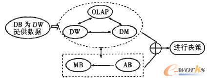 (1)DW:實現(xiàn)對決策主題數(shù)據(jù)的存儲和綜合,為DSS提供數(shù)據(jù)存儲和組織的集成。對底層數(shù)據(jù)庫中的數(shù)據(jù)進行集成、轉換、綜合,組織成面向全局的數(shù)據(jù)視圖。