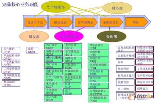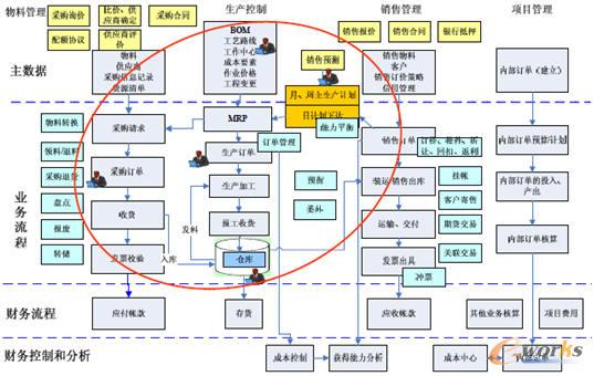 1)在工廠(chǎng)層面,包括銷(xiāo)售、采購(gòu)、計(jì)劃、生產(chǎn)、庫(kù)存至最終財(cái)務(wù)核心業(yè)務(wù)職能;