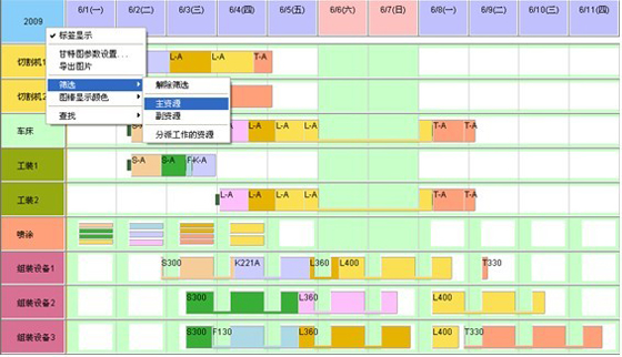 當資源圖與計劃圖結合顯示時,可以拖動計劃任務,實時看到資源占用情況的變化。