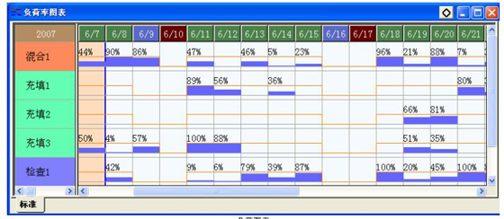 除了這幾種典型的以外,還有一些其它類型的甘特圖,有的是以上幾種的變化,如負荷圖(以下圖為例),著重表現(xiàn)了設備的理論產能和實際負荷情況的對比: