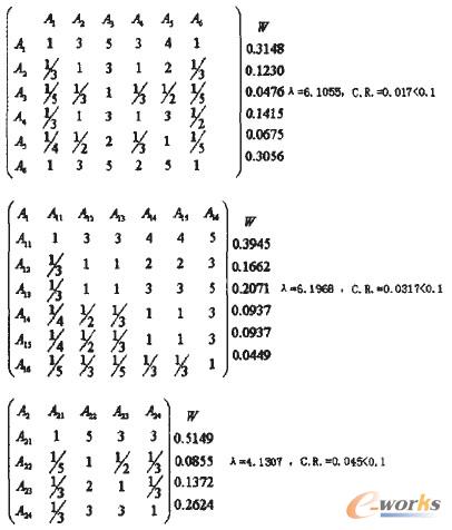本文采用層次分析法來計算指標權(quán)重。通過對專家詢問,專家組采用多級判斷標度對權(quán)重進行打分。通過計算,得到結(jié)果如下: