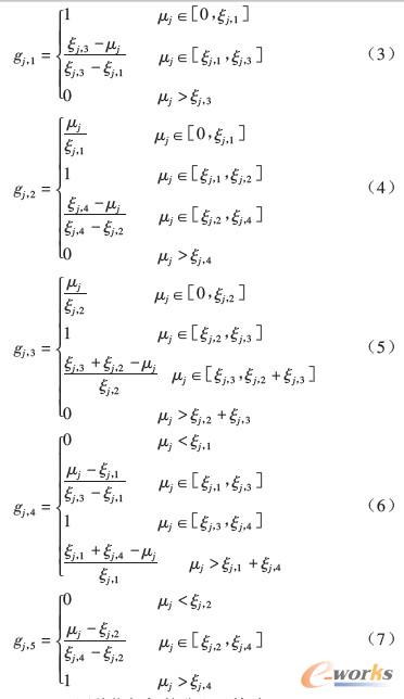 上述定性指標(biāo)的量化,首先采用同行專家評(píng)議法,對(duì)這些指標(biāo)做出定性評(píng)價(jià),然后根據(jù)以下建立的指標(biāo)測(cè)度函數(shù)進(jìn)行量化。