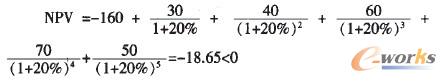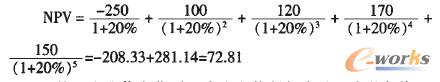 經(jīng)風(fēng)險調(diào)整后的資金成本率是20%,傳統(tǒng)的凈現(xiàn)值