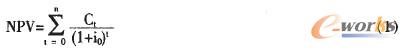 信息化的效益評價是一個十分困難的工作。目前常用的技術(shù)經(jīng)濟(jì)評價方法是凈現(xiàn)值法。該方法是利用經(jīng)過風(fēng)險調(diào)整的現(xiàn)金流量或資本成本率來計算凈現(xiàn)值。當(dāng)凈現(xiàn)值大于零,說明企業(yè)信息化建設(shè)項目在經(jīng)濟(jì)上可行,反之則不可行。計算投資項目凈現(xiàn)值(NPV)的公式如下: