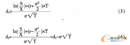 顯然,企業(yè)信息化項目為企業(yè)掙得新產(chǎn)品開發(fā)的投資機(jī)會。傳統(tǒng)凈現(xiàn)值對該項目的評價明顯存在不足。需要用含發(fā)展機(jī)會的凈現(xiàn)值進(jìn)行評價。根據(jù)期權(quán)定價模型。該投資機(jī)會的價值實質(zhì)上是以初始投資為約定價格的一個買方期權(quán),其標(biāo)的物為投資項目的價值即投資開發(fā)新產(chǎn)品的價值,運用Fischer Black模型可計算出這個投資機(jī)會的價值。