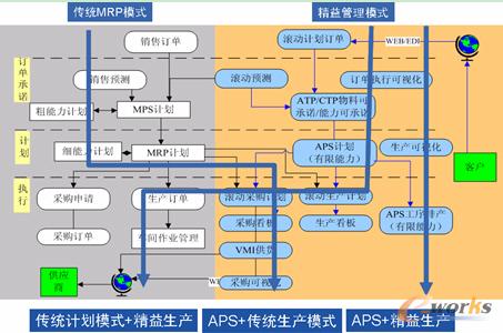 精益的滾動計劃和混合順序排程需要APS的需求計劃和優(yōu)化排序的支持,長提前期的物料計劃需要MRP的支持,看板的執(zhí)行和ERP的庫存模塊集成。