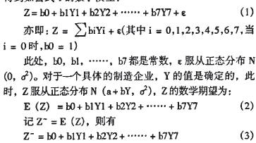 用多元線性回歸方程的形式,我們?cè)O(shè)Y是自變量,Z是依賴于Y的隨機(jī)變量,針對(duì)上面的指標(biāo)體系,可以得到如公式1的數(shù)學(xué)模型: