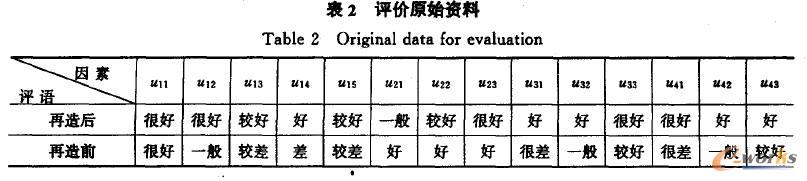 按層次分析法的基本要求及計算要求,企業(yè)設(shè)計調(diào)查表,聘請資深的咨詢公司和高校學者教授組成專家小組,并針對上述評價指標進行評價。專家小組在根據(jù)新流程與同行業(yè)相似流程進行各方面的比較之后,做出下述評價。有關(guān)原始資料如表2所示。