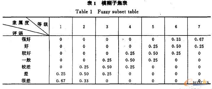 由經(jīng)驗、推理,從模糊子集表1中查到。