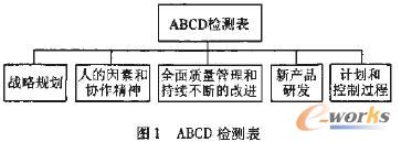 最早是由MRPII的先驅(qū)者oliverwight于1997年提出,共20個問題。這20 個問題按技術(shù)、數(shù)據(jù)準(zhǔn)確性和系統(tǒng)使用情況分成三組,每個問題均以“是”或“否”的形式來回答。第二版的檢測表擴(kuò)充為25個問題,且增加了一個分組內(nèi)容:教育和培訓(xùn)。在20世紀(jì)80年代,ABcD檢測表得到了進(jìn)一步的改進(jìn)和擴(kuò)充,推出了第三版。其覆蓋范圍已不限于MRPn,還包括了企業(yè)的戰(zhàn)略規(guī)劃和不斷改進(jìn)過程。第四版的ABCD檢測表于1993年由olive:wight公司推出,該檢測表也已不再是幾十個問題的表,而是按基本的企業(yè)功能劃分成五章:戰(zhàn)略規(guī)劃、人的因素和協(xié)作精神、全面質(zhì)量管理和持續(xù)不斷的改進(jìn)、新產(chǎn)品開發(fā)、計(jì)劃和控制過程,如圖1所示。