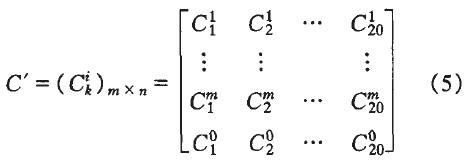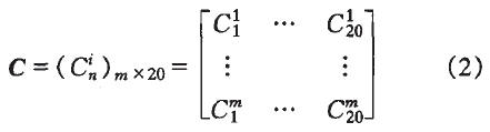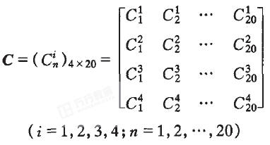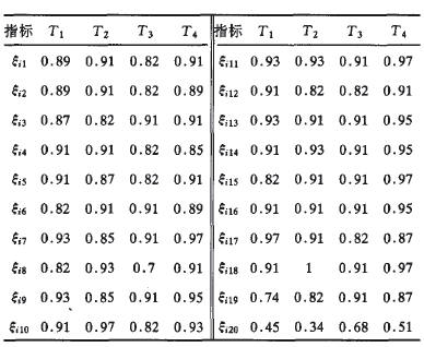 在R1、R2、R3、R4體系相應建立C1、C2、C3、C4比較數(shù)列(表1),并構(gòu)成一個由4個評價單元、20個評價指標構(gòu)成的評價系統(tǒng),組成的比較數(shù)列矩陣為