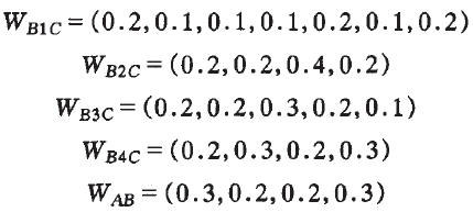 由AHP法計算相對權(quán)重WBC,結(jié)合式(7)、(8)得B層的關(guān)聯(lián)度為