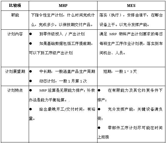 MRP系統(tǒng)與MES系統(tǒng)功能分工與特點列表描述。