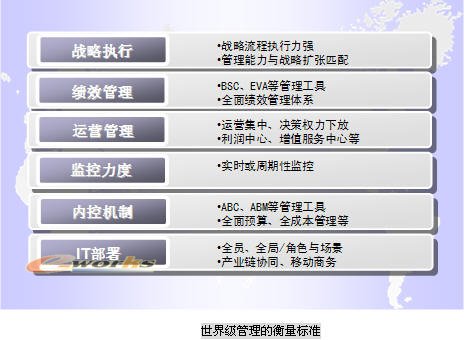 世界級管理,包括了六個方面的衡量標(biāo)準(zhǔn),分別是: