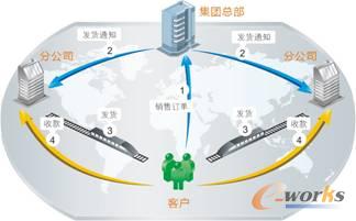 集團(tuán)總部統(tǒng)一制定銷售政策,分公司負(fù)責(zé)銷售策略的執(zhí)行。某個(gè)分公司接到客戶訂單,發(fā)出發(fā)貨通知單給另一個(gè)分公司,進(jìn)行內(nèi)部調(diào)撥;另一分公司接到發(fā)貨通知后,安排生產(chǎn)并直接發(fā)貨給客戶。前一個(gè)分公司向客戶結(jié)算收款,再與另一分公司進(jìn)行內(nèi)部結(jié)算。