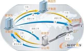 需要貨物的分公司向中間供應(yīng)方(通常是集團(tuán))發(fā)出要貨申請(qǐng),供應(yīng)方建立內(nèi)部調(diào)撥訂單,通知發(fā)貨方供貨到收貨公司;發(fā)貨方在接收到訂單后直接發(fā)貨到要貨的公司,收貨方與中間供應(yīng)方進(jìn)行賬款結(jié)算,中間供應(yīng)方與發(fā)貨方進(jìn)行賬款結(jié)算;供應(yīng)方、發(fā)貨方、收貨方為三個(gè)不同的公司,三方都參與結(jié)算。