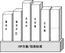 IRP與ERP的關(guān)系如上圖所示。其中包括SCM(供應(yīng)鏈管理)和CRM(客戶關(guān)系管理)在內(nèi)的種種應(yīng)用軟件,只有架構(gòu)在信息資源規(guī)劃方案/信息標(biāo)準(zhǔn)之上,才能在企業(yè)信息資源的開發(fā)利用上發(fā)揮所期望的作用。由此可見,IRP是ERP實(shí)施成功的保證,IRP能為企業(yè)和ERP開發(fā)商架起溝通共贏的橋梁。
