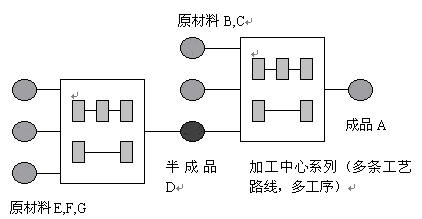 下圖一是現(xiàn)實復(fù)雜企業(yè)管理中一個典型的產(chǎn)品流程示意圖(包括:多層BOM,多條工藝路線和多個加工工序)