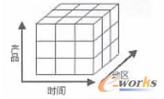 關系數(shù)據(jù)庫之父E.F.Codd提出了多維數(shù)據(jù)庫和多維分析的概念,即OLAP。維就是人們觀察數(shù)據(jù)的角度,維存在細節(jié)程度不同的多個描述方面,維的多個描述方面稱為維的層次。例如,時間維有日、月、季、年等層次來描述。多維數(shù)據(jù)一般都以數(shù)據(jù)立方體的結構存放。它用三維或更多的維數(shù)來描述一個對象,每個維彼此垂直。數(shù)據(jù)的測量值發(fā)生在維的交叉點上,數(shù)據(jù)空間的各個部分都有相同的維屬性。如圖2所示。