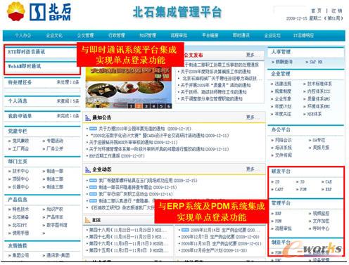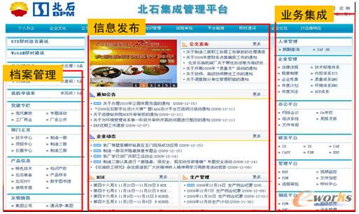 綜合集成:2009年北石廠已經建立起以協(xié)同辦公平臺為核心的集成管理平臺,它突破原OA系統(tǒng)的限制,將黨建專欄、產品信息、企業(yè)管理、公文發(fā)布、企業(yè)動態(tài)等信息平臺進行展示,將人事管理、生產管理、技術質量等業(yè)務平臺進行歸類,將辦公平臺、研發(fā)平臺、管理平臺、制造平臺等業(yè)務系統(tǒng)進行整合,使得北石集成管理平臺時充分具備信息發(fā)布、檔案管理、業(yè)務綜合集成強大功能。