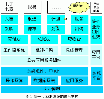 為了解決這些問題,使得ERP能夠適應(yīng)當(dāng)前管理軟件的實(shí)際需求和企業(yè)的實(shí)際情況,本文進(jìn)一步分析了新一代ERP的核心技術(shù),包括基于軟件體系結(jié)構(gòu)和企業(yè)模型進(jìn)行開發(fā)、基于集成平臺(tái)和工作流系統(tǒng)來構(gòu)架軟件。在此基礎(chǔ)上,提出了基于企業(yè)模型和工作流的新一代ERP系統(tǒng)的體系結(jié)構(gòu)和系統(tǒng)實(shí)施方法。