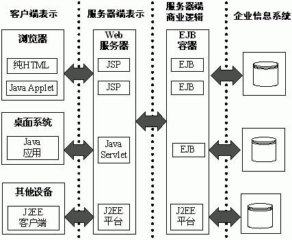 該體系結(jié)構(gòu)包含四個(gè)層次,分別是客戶層、Web層、業(yè)務(wù)邏輯層和數(shù)據(jù)層,是一種多層分布式企業(yè)應(yīng)用模型。業(yè)務(wù)邏輯按功能不同可以劃分為不同類型的組件,各組件可根據(jù)實(shí)際情況靈活分布在不同的機(jī)器上,共同組成一個(gè)基于組件的分布式系統(tǒng)。通過(guò)不同層的取舍及組合,可以衍生出許多應(yīng)用軟件開(kāi)發(fā)模型,如基于Web的四層模型、基于桌面應(yīng)用的三層模型(不包括Web層)、B2B模型(不包括客戶層)等,還可以直接用Web組件來(lái)實(shí)現(xiàn)商業(yè)邏輯和數(shù)據(jù)訪問(wèn)。