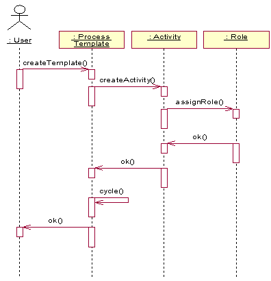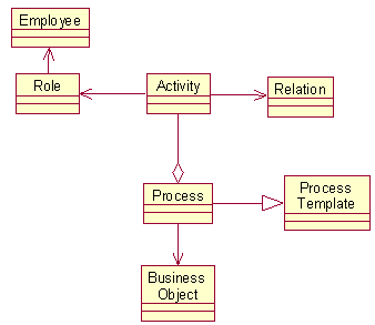 在這個模型中,過程有活動組成,活動之間存在不同類型的關系,每個活動由承擔相關角色的員工執(zhí)行。針對某個具體業(yè)務對象的審核過程定義可以在審核過程模板上進行;谏鲜瞿P,我們可以定義一個為采購訂單定義一個審核過程。