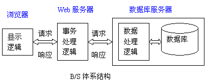 本質(zhì)上B/S也是一種C/S,它是由傳統(tǒng)的二層C/S結(jié)構(gòu)發(fā)展而來的三層C/S結(jié)構(gòu)在web上的應用,即瀏覽器/Web/數(shù)據(jù)庫服務器結(jié)構(gòu)的三層結(jié)構(gòu)。三層的B/S體系結(jié)構(gòu)是把二層的C/S結(jié)構(gòu)的客戶事務處理模塊從客戶機的任務中分離出來,由單獨的一層來負擔其任務,把負荷均衡的分配給了Web服務器,這樣給客戶機的壓力大大減輕了,于是原來兩層的c/S變成了三層的B/S結(jié)構(gòu),這種三層體系結(jié)構(gòu)如下圖: