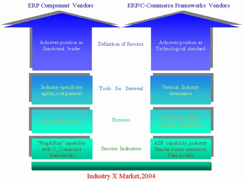 另一類(lèi)ERP提供商將成為ERP要件的提供者。這些提供商在行業(yè)或是交易同行社區(qū)內(nèi)進(jìn)行競(jìng)爭(zhēng),但并沒(méi)有取得競(jìng)爭(zhēng)的優(yōu)勢(shì)地位。為了獲得成功,他們將提供ccommerce行業(yè)的專門(mén)化功能的“插入”包(或者自己開(kāi)發(fā),或者通過(guò)合作開(kāi)發(fā)),這種插入包的特點(diǎn)是低成本和更優(yōu)越的關(guān)系導(dǎo)向服務(wù)。Ccommerce是對(duì)已經(jīng)致力于ERP、SCM、CRM及現(xiàn)在的ebusiness的ERP供應(yīng)商的另一個(gè)挑戰(zhàn)。其結(jié)果是,成熟的ERP市場(chǎng)將繼續(xù)得以鞏固。