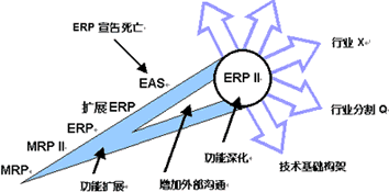 在1990年,Gartner定義了ERP,為資源計(jì)劃領(lǐng)域構(gòu)建了一個(gè)新的視野。這個(gè)視野是以資源計(jì)劃和庫(kù)存的精確性為中心,強(qiáng)調(diào)車間內(nèi)部和貫穿整個(gè)制造企業(yè)的信息共享,不管企業(yè)屬于是流程制造、離散制造或者是兩者的組合。因此ERP表現(xiàn)出不同的“風(fēng)味”。拓展的ERP反映一個(gè)現(xiàn)實(shí)就是許多的非制造行業(yè)求助于ERP系統(tǒng)以獲得財(cái)務(wù)事務(wù)處理能力。當(dāng)公司尋求可以提供SCM、CRM和電子商務(wù)功能的應(yīng)用軟件以使他們可以超越競(jìng)爭(zhēng)對(duì)手時(shí),ERP供應(yīng)商的反應(yīng)是通過(guò)合作伙伴、收購(gòu)、或原產(chǎn)品的開發(fā)提供企業(yè)應(yīng)用套裝(EAS)版本。然而,EAS未明白說(shuō)出的“為企業(yè)內(nèi)所有的人提供所要的一切”的潛臺(tái)詞導(dǎo)致了它對(duì)關(guān)注需求和外部溝通的未來(lái)的不適應(yīng)性。ERP II專注于深層次的各行業(yè)領(lǐng)域的專門技術(shù)、企業(yè)間而不是企業(yè)內(nèi)的業(yè)務(wù)過(guò)程,因而可以很好的適應(yīng)未來(lái)需求。