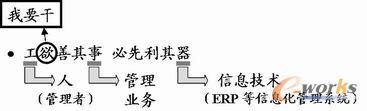 這里“工”就是管理者和員工,“欲”就是管理者有把管理搞上去、提高企業(yè)競爭力的強烈欲望,簡言之,“工欲”就是“我要干”。如果企業(yè)的管理者和全體員工沒有改進管理的欲望,再好的ERP產(chǎn)品也不可能發(fā)揮作用。因此,千萬不能忽視這個“工”字,也就是“人的因素”。