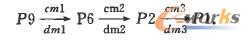 假設由最初料件P9加工成最終成品P1的總凈耗為cm,由最初料件P9加工成最終成品P1的總損耗率為dm,則cm和dm的計算公式如下: