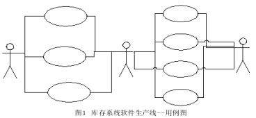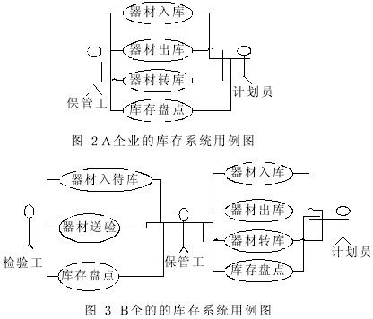 圖1是我們定義的一個庫存系統(tǒng)軟件生產(chǎn)線的用例圖。該用例圖中的可變點定義引入了"可選用例"和"可選角色"兩個范型。圖2和圖3分別是依據(jù)該庫存軟件生產(chǎn)線生成的兩個實例應(yīng)用系統(tǒng):A企業(yè)的庫存系統(tǒng)用例圖和B企業(yè)的庫存系統(tǒng)用例圖。
