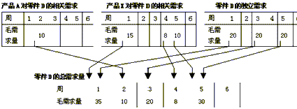 圖3 相關(guān)需求與獨(dú)立需求同時(shí)存在時(shí)的需求量計(jì)算